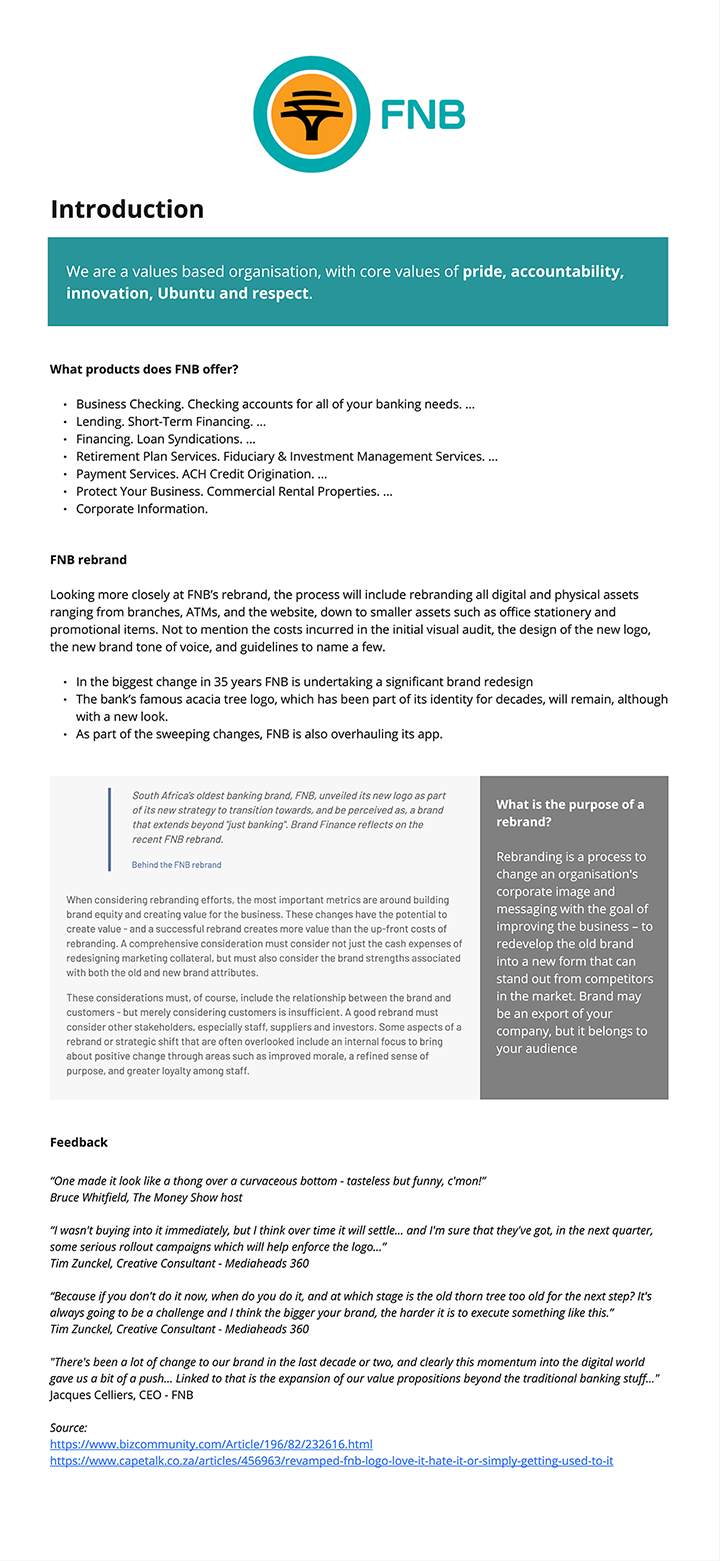 Research piece on the new FNB app and rebranding