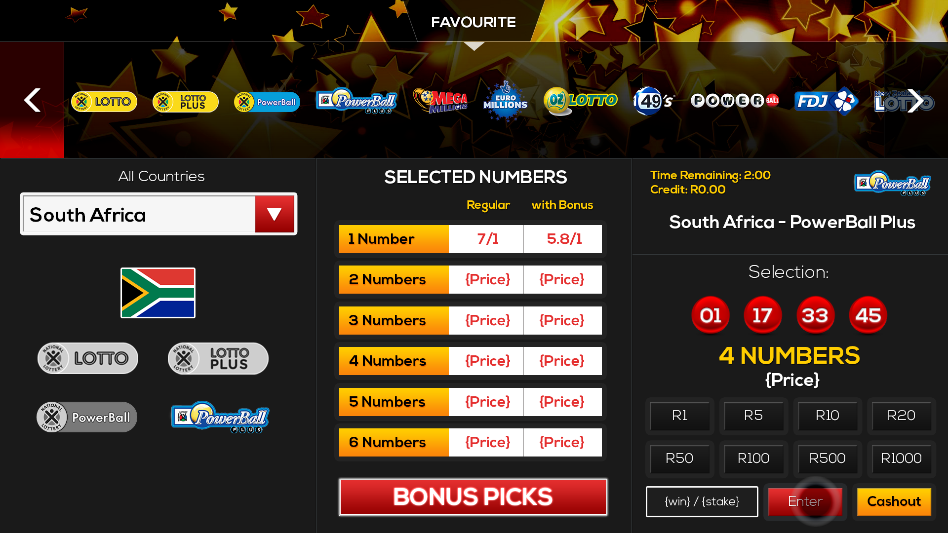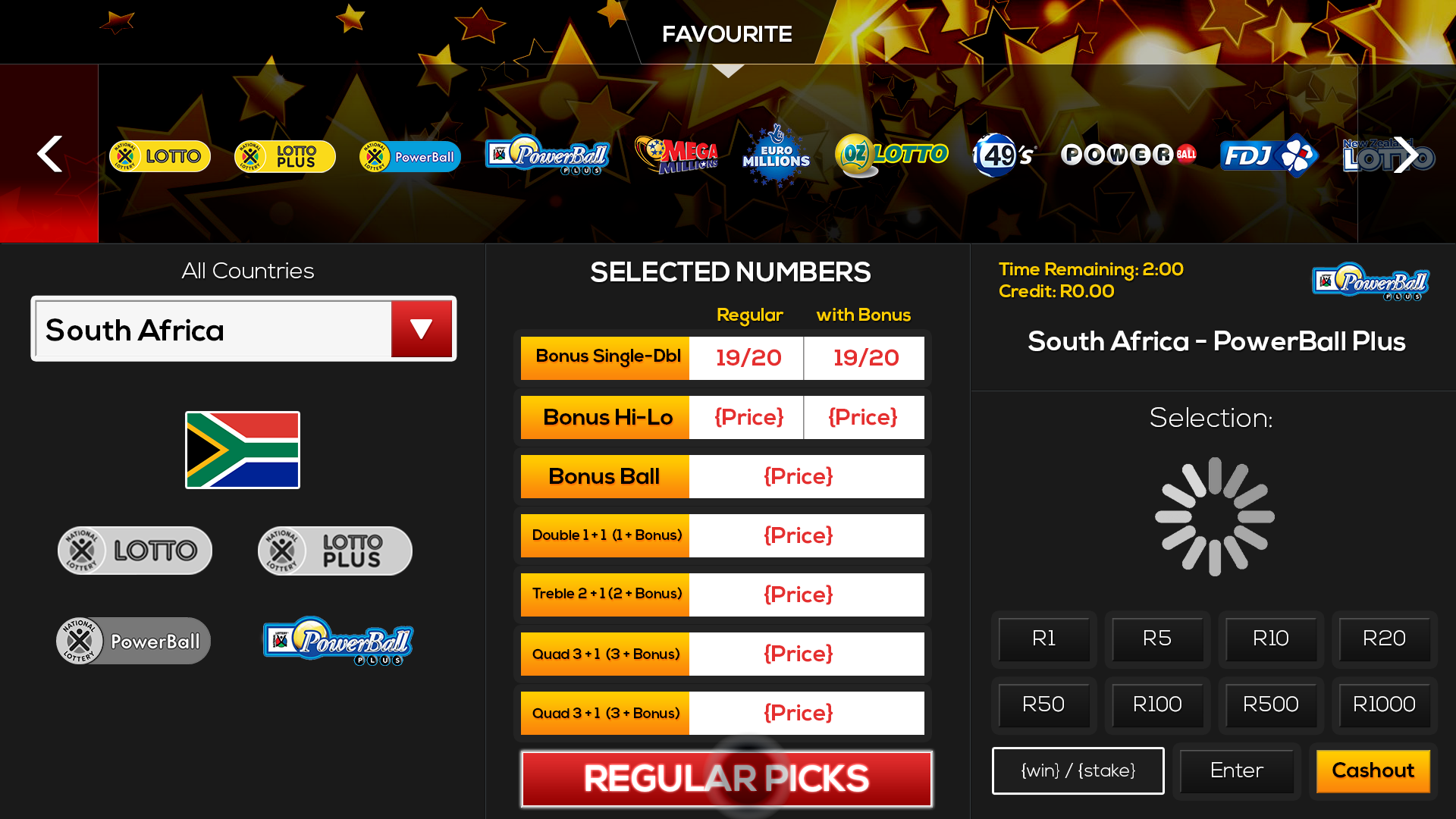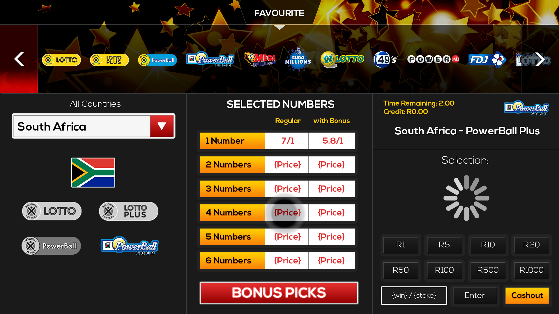 Touch screen customer experience for entertainment kios. Client ask was to transform business needs into a client experience for general entertainment and live multi lotto playable interactions.